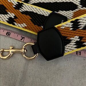 Bold strap with intricate pattern. Features gold-tone clasp. Perfect for elevating any bag. Although I pulled off the tag, I never used this bag. Adjustable crossbody strap. It didn’t come with a dust bag but will ship in the bag I stored it in.