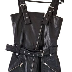 ZARA Real Leather Black Overall Mini Dress – Size L New
