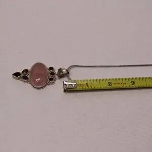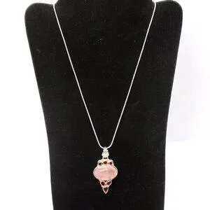 Silver 9.25 Sterling 24" chain necklace, w/large beautiful pink rose quartz cabachon stone.