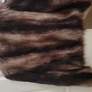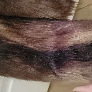 Chic and cozy teddy jacket. Rich brown hues. Perfect for warmth and style. The faux fur is so soft! This coat is brand new. tage were removed thinking i would wear it, but the event is bought to wear it to was canceled. Now I want it to get used and loved by someone! I hate seeing this just hanging in my closet. It has been stored in a dust bag with plastic covering underneath. Very shiny faux fur. Colors shift in different lighting. Cream, tan, dark brown, light brown, and an almost dark purple undertone. It truly is a gorgeous coat. The sleeves are long and will likely rest at the knuckle.