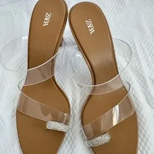 Stylish Zara heels with clear straps. Perfect for any occasion. Modern and elegant design.