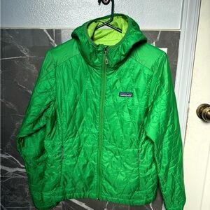 Patagonia nano puff hoody rare women's green with lime green interior like new!