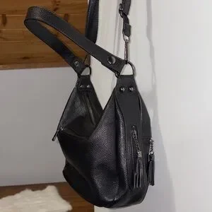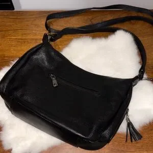 This elegant black leather shoulder bag is perfect for any occasion. Its sleek design and high-quality material make it a must-have accessory. The versatile black color complements any outfit.