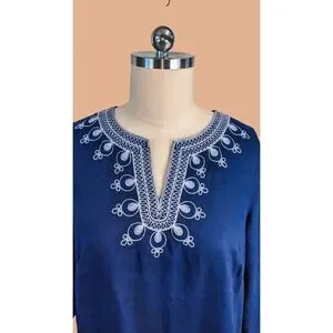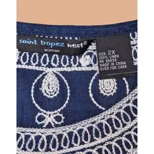 Saint Tropez West plus size 2X Navy blue Linen embroidered V neck Tunic