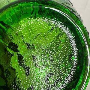 This elegant green glass bowl adds a touch of sophistication to any home decor. Perfect for displaying fruits or as a standalone art piece.