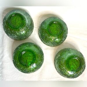 Four Indiana Style Art Green Carnival Glass 4.5” Floral Grape Small Bowls
