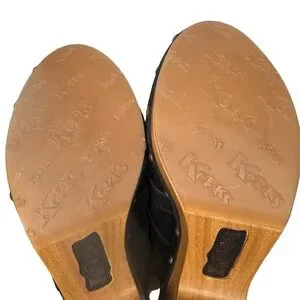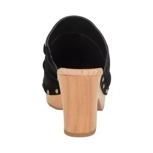 KORKS Woodley Black Suede Studded Clogs Mules with Wooden Heel Size 8M