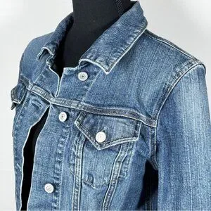 Classic denim jacket by GAP with a timeless design. Features a button-up front and chest pockets. Great for everyday wear.
