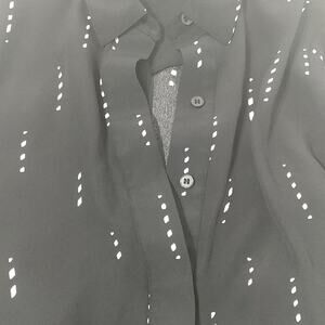 Ann Taylor black and white long sleeve dress with a partial button front, tie at the waist, and pockets. No size tag. Please see approximate measurements below.
