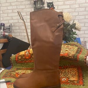 Step out in style with these elegant brown over knee-high leather boots. Perfect for any occasion, they offer both comfort and sophistication. NWOT sz 8 however run alittle big fits me more like an 8.5 . Just beautiful . Get them at over Half off New!
