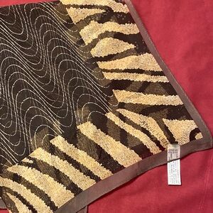 Anne Klein Brown and Tan Patterned Silk Scarf