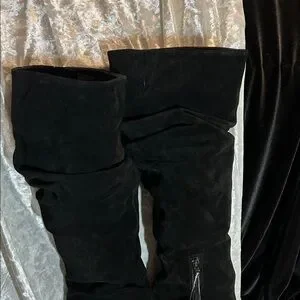 Brand new with tags. Round triangular heel. Slightly over the knee high. Zipper at ankle. Simply stunning! A definite fashion statement!!!❤️❤️❤️❤️ Ruched at top of boot.