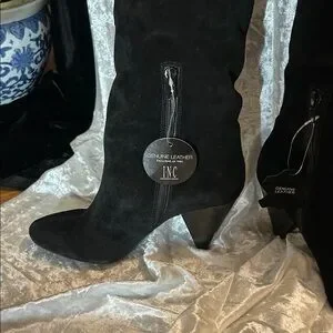 NWT INC LEATHER BLACK SUEDE BOOTS 7