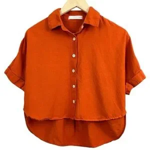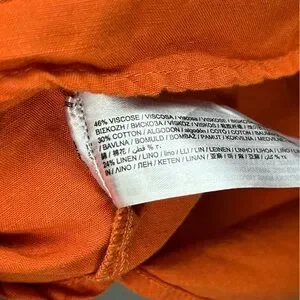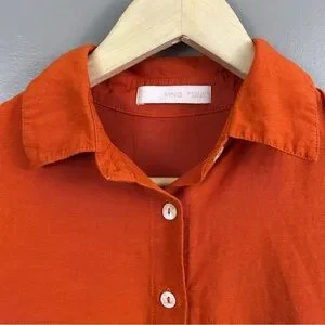 Mango Oversized Orange Linen Blend Short Sleeve Button-Up Shirt Size 2