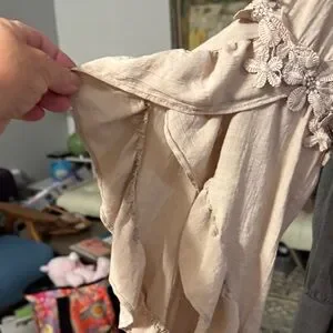 Umgee Beige Blouse with Floral Trim