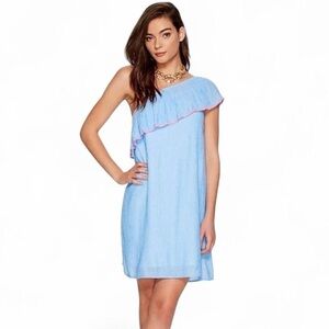 Lilly Pulitzer Blue One Shoulder Ruffled Dress, Women’s Small