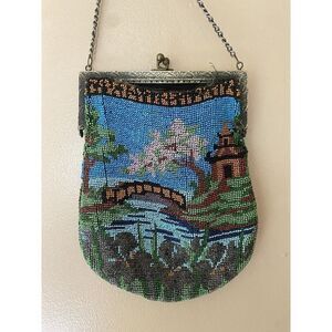Vintage Micro Beaded Landscape Pictorial Antique Bag Purse Evening 1920s 30s