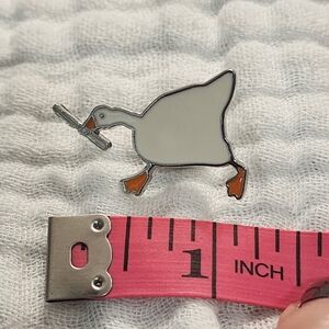 NWOT white goose with knife enamel pin. Metal with enamel coloring. Comes with metal back fastener. See pic for measurement.