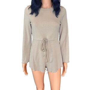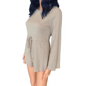Princess Polly Aiken Long Bell Sleeve Ribbed Boho Beige Romper
