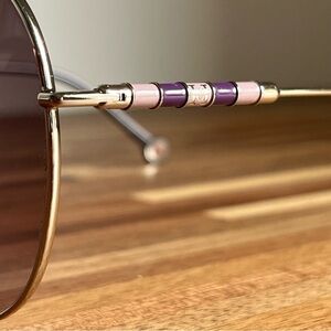 Purple detail on light gold metal arms