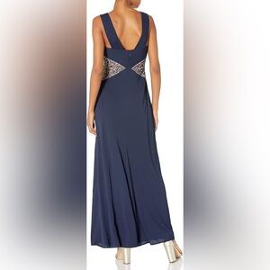 BCBG MaxAzria 'Hasani' Dark Navy Embroidered Plunge Side Slit Gown