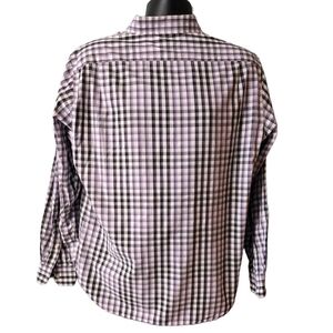 Classic Michael Kors men’s dress shirt in a sharp purple and black plaid pattern. Tailored yet comfortable, this button-down shirt works perfectly for office wear, business casual, or dressed-up evening looks. The timeless plaid design pairs easily with slacks, chinos, or dark denim.
