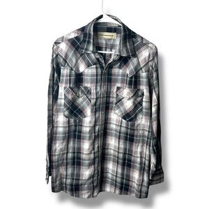 Bit and Bridle Western Pearl Snap Long-Sleeve Shirt Red Black Plaid Size Large