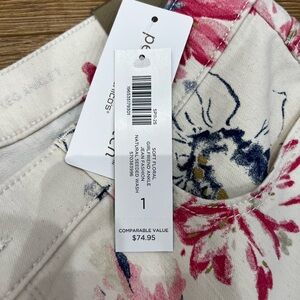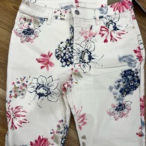 Chico's NWT Cream and Pink Floral Straight Leg Jeans Size 1