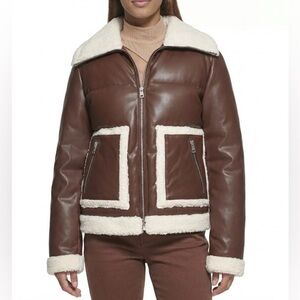 Levi's Women’s Brown Faux Leather Puffer Jacket Size M