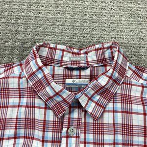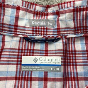 Columbia Shirt Men Extra Large XL Red White Plaid Button Up Short Sleeve Outdoor