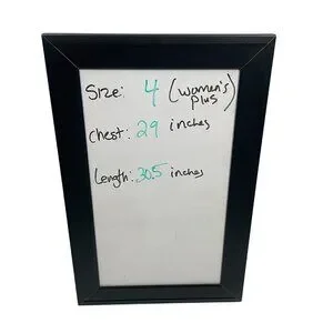 Measurements: 29 inches across chest flat