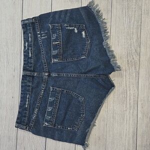 Free People Women's Distressed Denim Shorts Blue Size 30