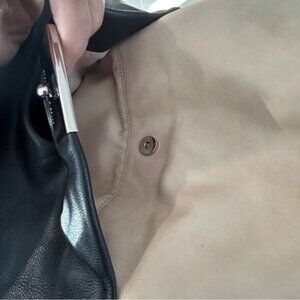 Immaculate interior features 2 wide zipper pockets one snap pouch and two slide-ins