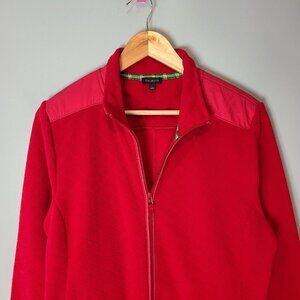 Talbots Jewel Red Quilted Jacket size Large winter holiday coat Christmas Fleece