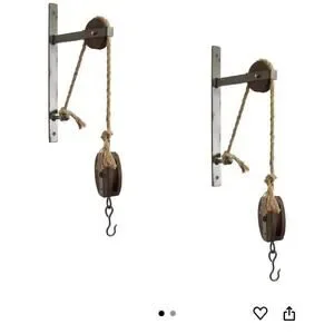 Excellent condition set of Pulley Mounting Brackets With Hook Rustic Vintage Inspired Metal Wood Twine. These look great with lanterns hanging over a console table! Could also be used to hang plants etc!