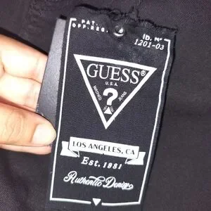 These Guess black jean shorts offer a sleek and casual look, perfect for everyday wear. Crafted from durable denim, they provide a comfortable fit with a stylish flat front design. The iconic Guess logo adds a touch of brand recognition to these versatile shorts.