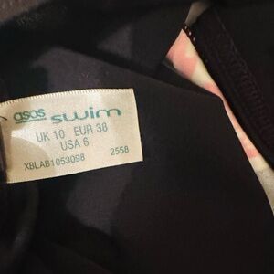 Stylish ASOS swimwear featuring a sleek black base with pink highlights. Perfect for beach outings.