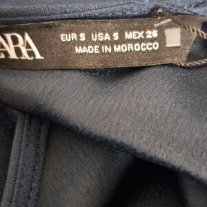 Zara "NEW" Dark Blue Romantic Goth Front Slit Witchy Cocktail Midi Dress Size S