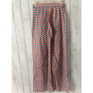Jimmy Choo Laren beach pants with a diamond print in orange and blue.
