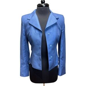 Akris Blue Cashmere Silk Blend Tailored Blazer Swiss Luxury Minimalist Size 6