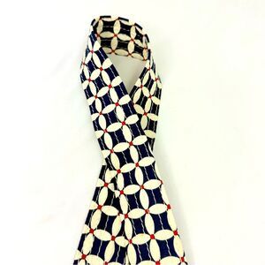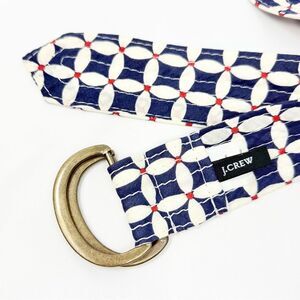 J. Crew Blue Red White Geometric Floral 100% Cotton Slide Buckle Fabric Belt