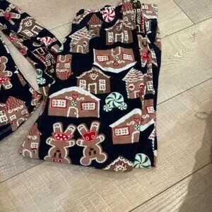 The product is a pair of Disney Mickey Mouse gingerbread house women's pajamas in size medium, perfect for women between 8-10. Made by Disney, these pajamas feature a cute and festive gingerbread house design, with a colorful and playful multi-color pattern. The regular size ensures a comfortable fit, making them ideal for a fun and cozy night's sleep.