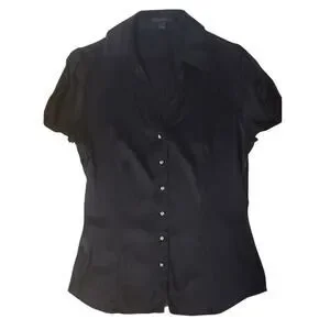 Vintage Y2K Express Black Silk Short Sleeve Blouse Medium