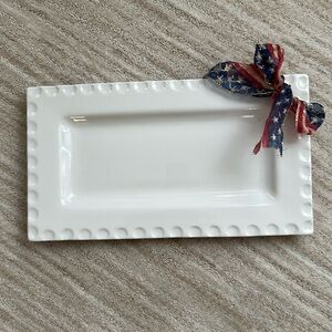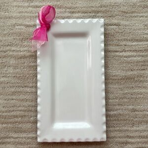 Southern Living Dress Me Up Ribbon Rectangular Platter 13.5 x 7.5 White Scallop