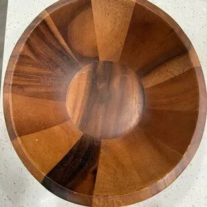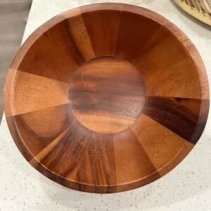 Enhance your dining experience with this elegant acacia wood bowl. Its rich brown tones add a touch of natural beauty to any table setting.