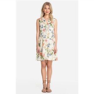 Johnny Was Jade Caprice Women Floral Lace Up Eyelet Silk Blend Mini Dress Size L
