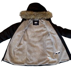 Lands’ End Parka Fleece Lined Faux Fur Hood Black Jacket Coat Snow Winter 10/12