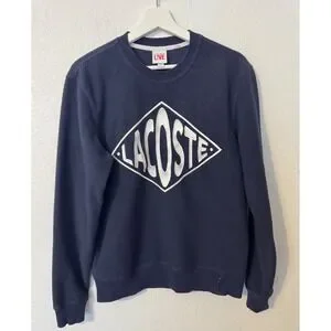 Lacoste LIVE Fleece Sweatshirt Diamond Logo Pullover Navy Blue Mens