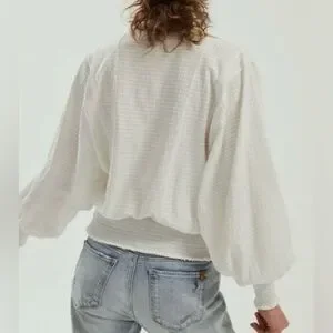 Anthropologie Smocked Top. White. Size S.