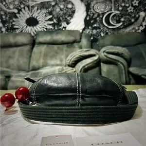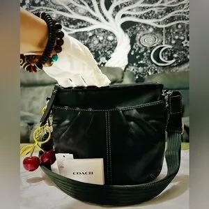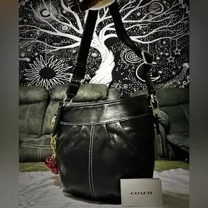 Vintage Coach soho shoulder bag Black soft Leather with red Cherry Charm